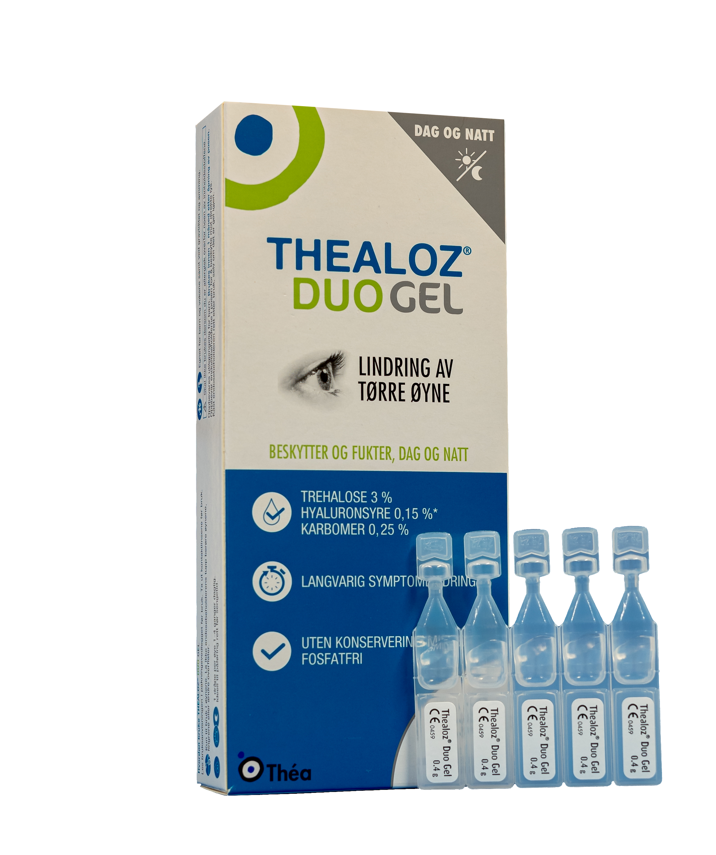 Beskrivelse Beskyttelse , hydrering og smøring av øynene for behandling av moderat til alvorlig tørt øye syndrom. Demper ubehag, stikkende følelse, følelse av fremmedlegeme eller irritasjon i øynene forårsaket av ytre faktorer. Langvarig symptomlindring uten konserveringsmiddel Fosfatfri Endosebeholdere. La ikke tupp berøre øynene, fingrene eller andre overflater Beskytter dag og natt, fin å bruke på kvelden før du legger deg. Ta ut kontaktlinser før bruk. |
