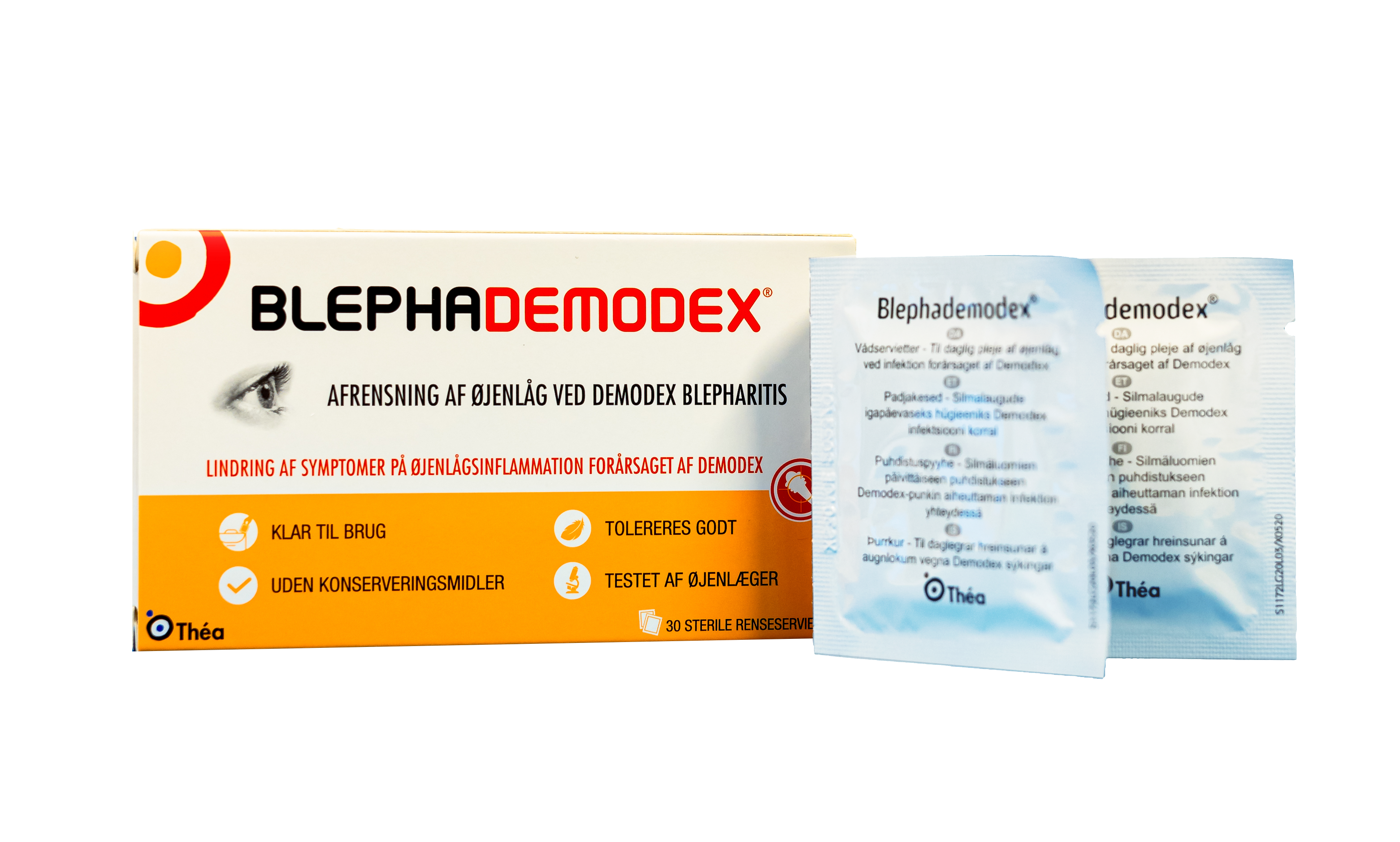 Beskrivelse Lindrer symptomer forårsaket av hårsekk eller øyelokksmidd, som feks. kløe, svie, tørr hud og betennelse på øyelokkskanten. Reduserer rødhet på øyelokkskanten og følelsen av rusk i øyet. Rengjører og fjerner skorper, flass på øyenvipper, urenheter og midd. 30 sterile våtservietter uten konserveringsmiddel, kun for voksne. Serviettene er ikke klissete og skal ikke skylles av etter bruk Bruk en serviett per øye, til engangsbruk |