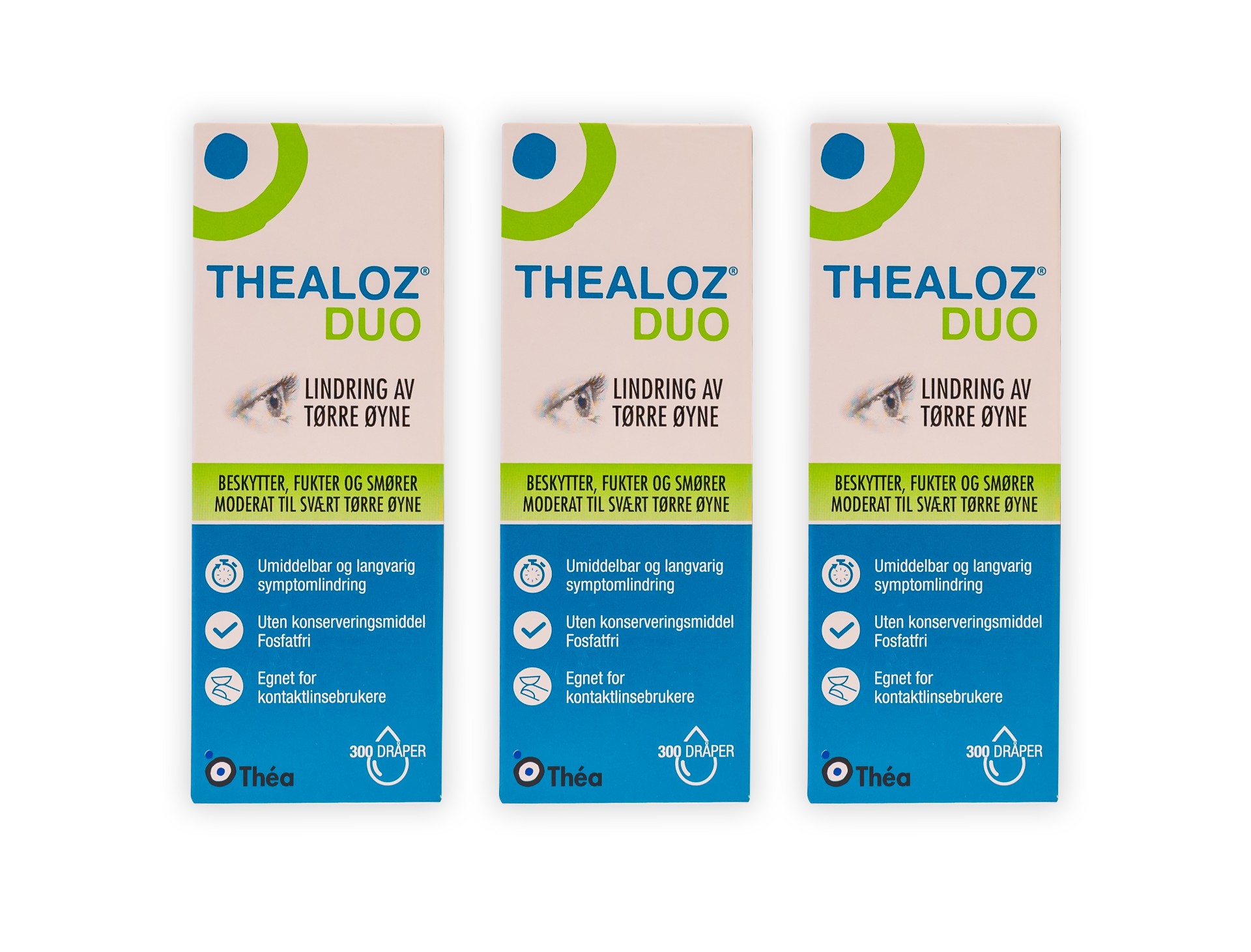 Beskrivelse Umiddelbar og langvarig symptomlindring demper ubehag, stikkende følelse, følelse av fremmedlegeme eller irritasjon i øynene forårsaket av vind, røyk, forurensing, støv, sol eller kulde, tørr varme, klimaanlegg, flyreise eller langvarig arbeid foran dataskjerm. Uten konserveringsmiddel, fosfatfri Egnet for kontaktlinsebrukere Må brukes innen 3 måneder etter åpning ANBEFALES TIL ALLE MED TØRRE ØYNE UANSETT ALVORLIGHETSGRAD Thealoz Duo fungerer uansett om du har milde, middels eller alvorlige plager med tørre øyne. Grunnen til dette er at uansett alvorlighetsgrad har du med tørre øyne nytte av både fukt og beskyttelse. THEALOZ DUO KAN BRUKER SAMMEN MED KONTAKTLINSER Det er vanlig at personer som bruker kontaktlinser kan få problemer med tørre øyne. Tips til deg som er kontaktlinsebruker: drypp en dråpe på hver linse før den settes på (på linsens konkave del) og tas ut, samt ved behov i løpet av dagen. Smøring av linsen gjør innsetting og uttak lettere. Det blir også mer behagelig å ha på linsen gjennom hele dagen. |